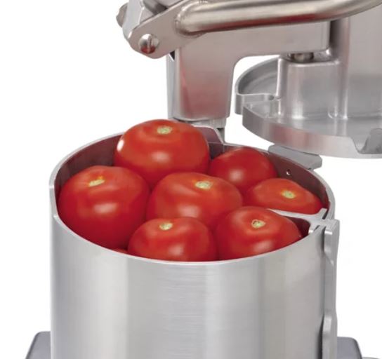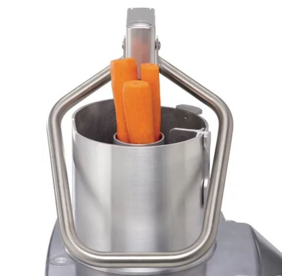 Robot-Coupe CL52 - professzionális zöldség és gyümölcs szeletelő és feldolgozó gép, acél motorburkolat, öntvény alumínium fej, 1 sebességes INDUKCIÓS motor, 750W/400V teljesítmény, 1 sebesség 375 ford/perc, biztonsági kapcsolóval, mágneses biztonsági leállító rendszer és motorfék, 2 db betöltő nyílás, (1 félhold alakú 139 cm2 és egy henger alakú Ø58 cm) automata újraindulás a nyomókar lenyomásával, gyakorlati teljesítménye: 250-400 kg/óra, TÁRCSÁK NÉLKÜL - opcionálisan 48 db tárcsa közül választhat.