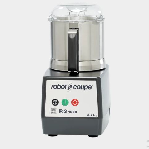 Robot-Coupe R3-1500 - professzionális felhasználásra tervezett asztali KUTTER 3.7 literes RM. acélból készült edénnyel, átlátszó PC tetővel, sima élű Rm. acél SABATIER késsel. INDUKCIÓS motorral, 1 sebesség fokozat: 1500 ford./perc. PULSE funkcióval. Polycarbonát motorburkolat, mágneses biztonsági rendszer és motorfék, automata motor megállítással, motor telj.: 650W/230V; Javasolt feldolgozási mennyiségek: DURVA aprítás 1.0kg. . Emulgálás: 1.5 kg. Dagasztás: 1.0 kg.. FINOM daralás 500 gr. FONTOS: a készülék kiválóan alkalmas pépesítésre, pürésítésre, darálásra, különböző finomságú aprításokra. Magvakkal is kiválóan használható, készíthetőek krémek, pl. PESTRO, HUMUSZ, TÖKMAG pép, DIÓ v. MOGYORÓ krém, különböző zöldség pástétomok. Bölcsődék, idős otthonok, kórházak részére szinte nélkülözhetetlen alapgép.