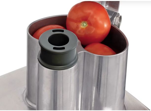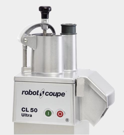 Robot-Coupe CL50 Ultra - professzionális asztali zöldség és gyümölcs szeletelő és feldolgozó gép, rozsdamentes acél motorház, alumínium öntvény fejjel. INDUKCIÓS motor, 550W/400V teljesítmény, 1 sebesség 375 ford/perc, biztonsági kapcsolóval, mágneses biztonsági leállító rendszer és motorfék, 2 db betöltő nyílás, 1 félhold alakú (139 cm²) és egy hengeres (Ø 58 mm) automata újraindulás a nyomókar lenyomásával,, gyakorlati teljesítménye: 150-300 kg/óra, Megjegyzés: opcionálisan 48 db tárcsa közül választhat, mint pl. 13 db különböző Szeletelő tárcsa, 3 db különböző hullámos szeletelő, 11 különböző Reszelő tárcsa, 12 db Julienne tárcsa, továbbá 11 db Kockázó szett, 4 db Hasábvágó szett, - közül választhatja ki a megfelelőeket. Ajánlott közepes méretű konyhák kiszolgálására, éttermek, Hotelek, intézmény konyhák, óvodák, iskolák, idősotthonok, továbbá feldolgozók és cukrász műhelyek részére, letölthető PDF tárcsa katalógus! A legkedveltebb asztali modell, könnyen használható, nagy teljesítményű, széles vágási lehetőségeket kínál!