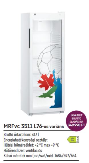 Liebherr MRFvc 3511-L76 - üvegajtós, fehér színű FOCI VB Dekor hűtőszekrény, ventilációs hűtés, 347lt