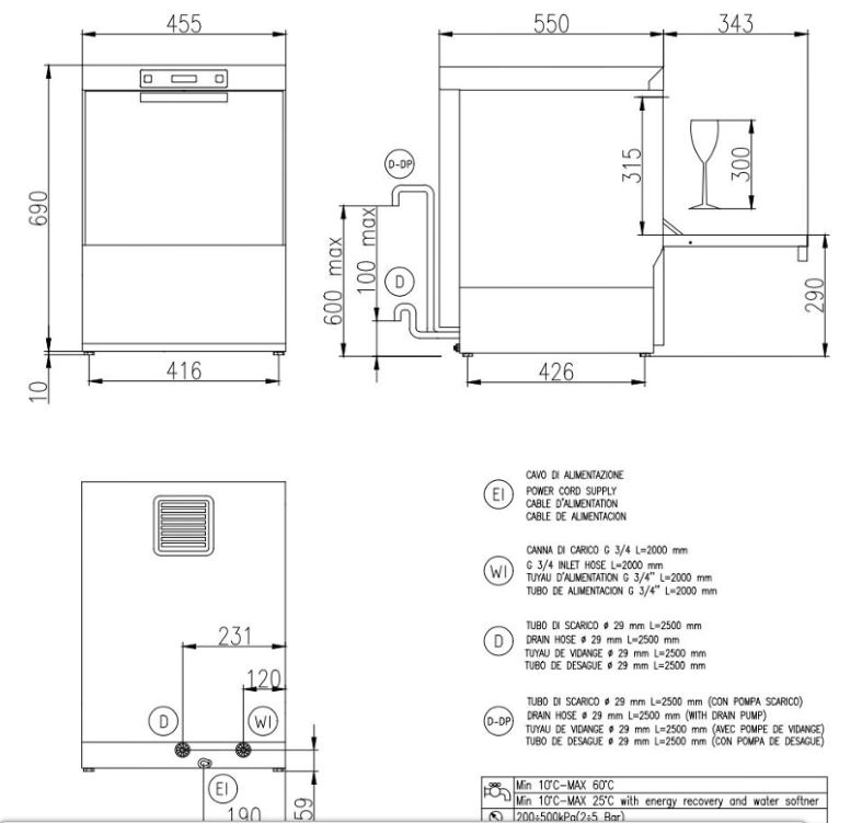 ARISTARCO New AF 40.30 ESi - professzionális felhasználásra tervezett pult alatti mosogató gép, 2025-ös modell DIGITÁLIS / Elektronikus vezérlés, LED Display kijelzés, 40*40 cm kosár méret, dupla falú hőszigetelt ajtó, mélyhúzott préselt, hegesztés nélküli mosótank lekerekített belső sarkokkal, öblítővíz hőmérséklete: +85⁰C; mosóvíz hőfok: +60⁰C. Kapacitás 20-40 kosár/óra, 4 mosóprogram, LIGHT 90"; STANDARD 120"; HEAVY 180" és INTENSE 9' mosogatási ciklusok. Hasznos kamra belmagasság: 300 mm, vízfogyasztás 2.0 lt./ciklus. Könnyen kivehető és tisztítható rm. acél kombinált alsó mosó és öblítőkar, valamint felső öblítőkar! BEÉPÍTETT mosogató és öblítőszer adagoló szivattyúk, valamint GRAVITÁCIÓS szennyvíz ürítés! Tartozék: 2 db pohármosó kosár, 1 db 12-es tányértartó, + 1db evőeszköz mosó kosár, továbbá tartozék FELÜLET SZŰRŐ! FONTOS: beszerelés és beüzemelés szolgáltatásról érdeklődjön kollégánktól.
