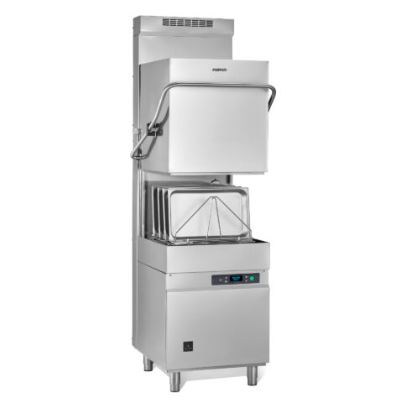 ARISTARCO AH 1040 EPI ES - ENERGIA Visszanyerő rendszerrel gyártott - Hood-Type átadó rendszerű ún. ’KALAPOS’ tányér, pohár, tálca; evőeszköz és GN1/1 tálca mosogató gép, 50*50 cm kosárral. Hasznos belső magasság: 415 mm, telj.: 7/20/30/60 kosár/óra, vízfogyasztás 2.5 lt./ciklus, tank víz: +60/+65ºC; boiler víz: +80/+85 ºC; szimpla falú, felfelé csúszó ajtó, hőszigetelt tank oldalfalak. PRS System: Premium Rinse System - atmoszferikus ún. TÚLNYOMÁSOS boilerrel, kiváló minőségű öblítési eredmény, a bejövő víz nyomásától függetlenül, beépített szivattyúval... Garantált a legjobb minőségű öblítés, egészen minimális 0.5 bar nyomásig! Elektronikus vezérlés, LCD kijelzéssel. MP Tech - Multipower technológia, szabályozható elektromos teljesítmény az igényekhez és hálózathoz igazodóan, akár későbbi változás esetén is 400V/230V! Rm. acélból készült ALSÓ és FELSŐ mosó és öblítő karok, gyárilag beépített ÖBLÍTŐSZER és MOSOGATÓSZER adagolókkal, GRAVITÁCIÓS szennyvíz ürítéssel Automata ÖNTISZTÍTÓ ciklus, 4 program. Ciklusidő: szennyezettségtől függően választható: LIGHT 60"; STANDARD 120"; HEAVY 180" és INTENSIVE 9' lehet. Tartozék: 1 db univerzális, 2db 12/18 db-os tányér +2db evőeszközkosár. Megjegyzés: az ár nem tartalmazza a kiszállítás, beszerelés, beüzemelés költségeit!