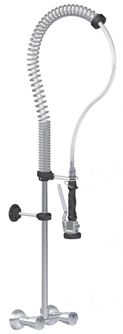 RUB - FALI TOP-CLASS széria előmosó leverető kézi zuhany, kétgombos keverő csapteleppel, alsó vízvételi lehetőség medence töltő kifolyó szárral, asztali csatlakozással, kiakasztható zuhanyfej, a nyitó kar állandó áteresztésre rögzíthető, erősített tömlővel, átfolyás 3 bar nyomás mellett, 16l/perc a zuhany fejből. változatban (1200 mm magas) így csepegtető fali polc alá is helyezhető., kiváló minőség TOP-CLASS széria terméke, gyártói kód: RUB00958007 Made in ITALY.
