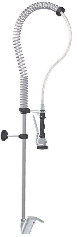 RUB - asztali előmosó leverető kézi zuhany, keverő csapteleppel, asztali csatlakozással, kifolyó nélkül! kiakasztható zuhanyfej, a nyitó kar állandó áteresztésre rögzíthető, erősített tömlővel, átfolyás 3 bar nyomás mellett, 16l/perc a zuhany fejből. változatban (1200 mm magas) így csepegtető fali polc alá is helyezhető., kiváló minőség TOP-CLASS széria terméke, Made in ITALY.