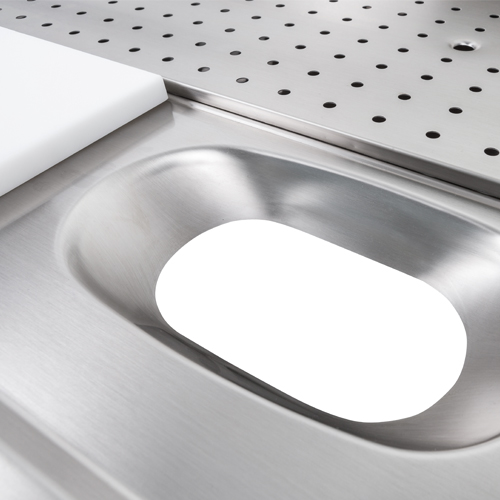 HÚS előkészítő és mosó munkalap, vágólappal és ledoból