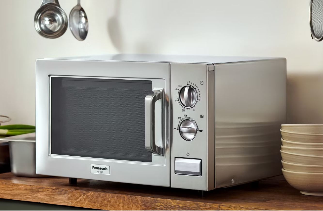 Panasonic NE-1027 - professzionális felhasználásra tervezett és gyártott mikrohullámú készülék, 22 literes, 1 szintes, GN1/2 - 330*330*200 mm belső méret, 1db 1000W teljesítményű ipari magnetron fejjel, elektro mechanikus vezérlés 4 teljesítmény szint, kijelzés és belső világítás nélkül, kívül festett ezüst színű acél, belül műanyag burkolat; Oldalra nyíló rozsdamentes acél keretes ajtó, kerámia aljlemez.