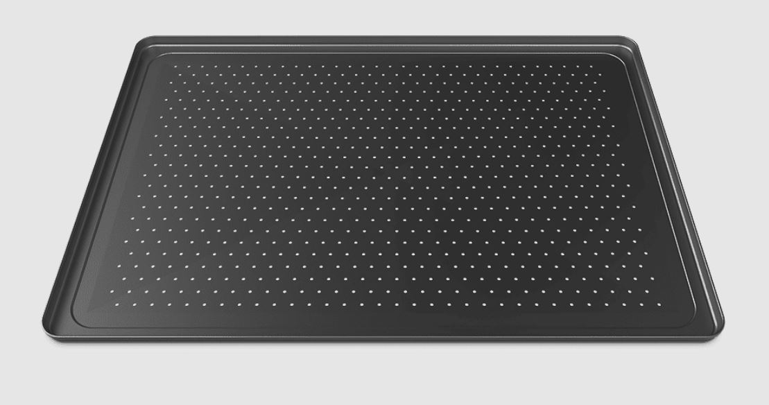 UNOX TG430 - FORO.BLACK alumínium perforált NON-STICK /tapadás mentes felületű sütő tepsi, a (800-as szériájú) 80 cm külső szélességű látvány sütő kemencékkel kompatibilis, a tepsi külső mérete: 600*410 mm, magassága 15 mm, sütőfelülete perforált / tapadás mentes